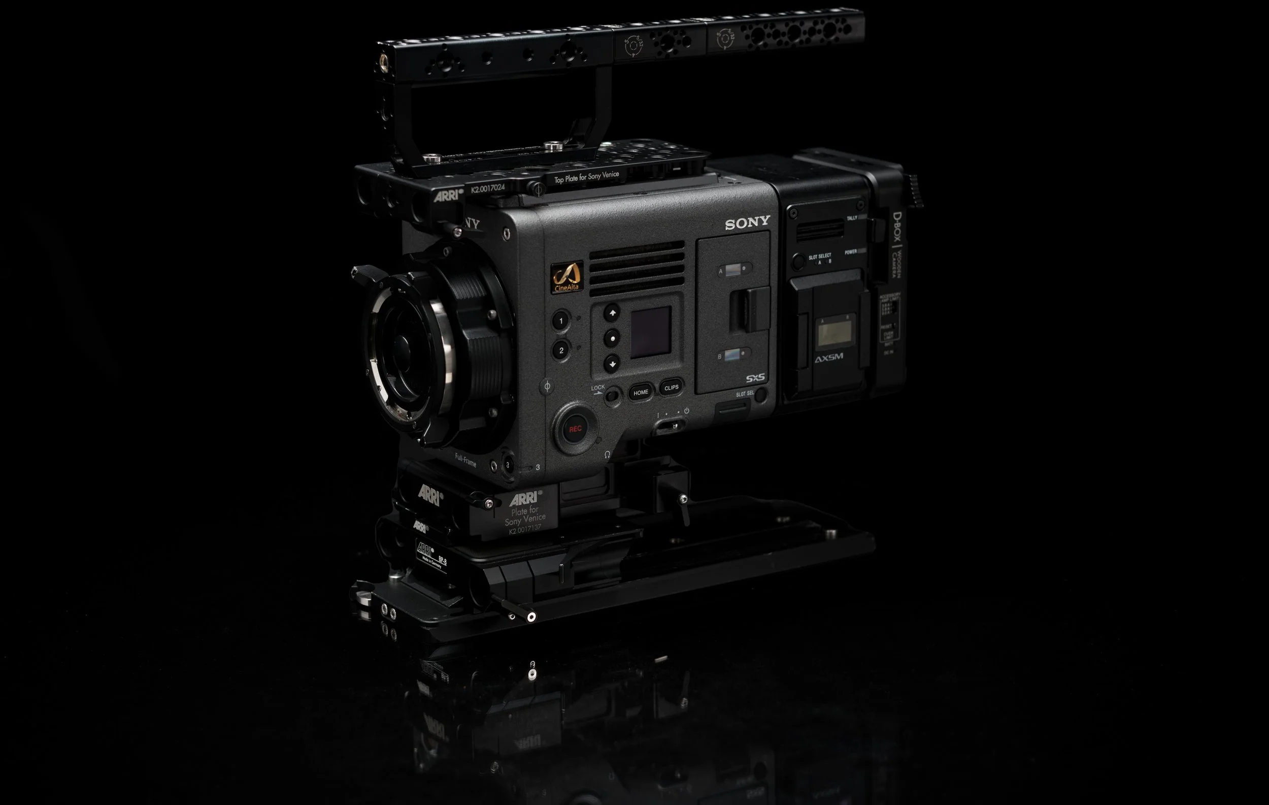 Our Sony Venice 6K packages come equipped with both the Arri Pro Cine Set and the Pro Broadcast set. High Frame Rate, Anamorphic shooting and Full Frame shooting licenses are all available when using the R7 raw recorder. The Wooden Camera D-Box provides power distribution for any accessories you need to add to your camera build. Run Stop and camera control are accessed through the remote port when using the appropriate 8-pin Hirose cable.